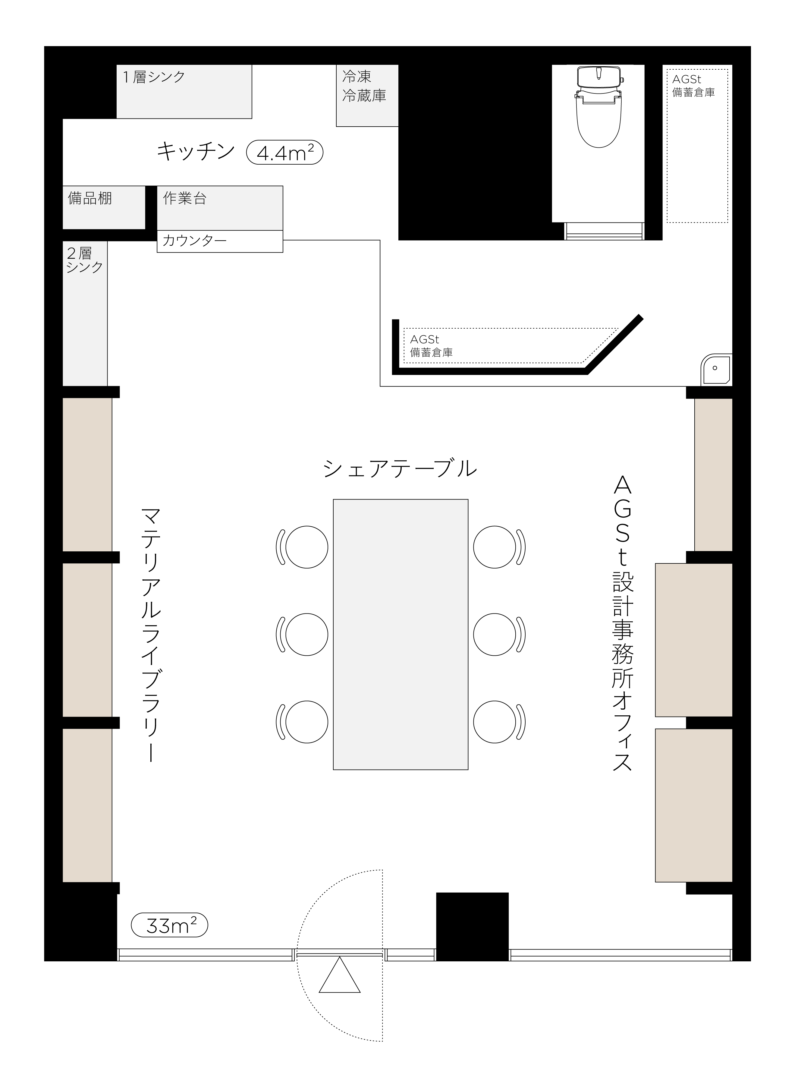 わたしたちは、建築や空間といった専門性を開いていきたいと考えているため、設計事務所の機能を共有可能な設えとしました。